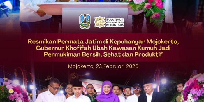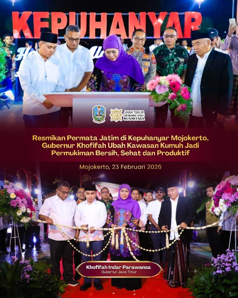 MOJOKERTO, 24 FEBRUARI 2026 – Gubernur Jawa Timur Khofifah Indar Parawansa meresmikan Penanganan Kumuh Skala Kawasan Terpadu dan Terintegrasi me