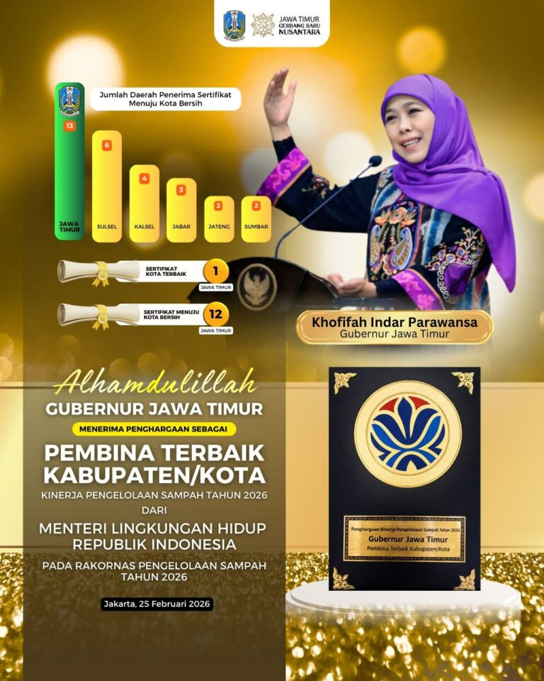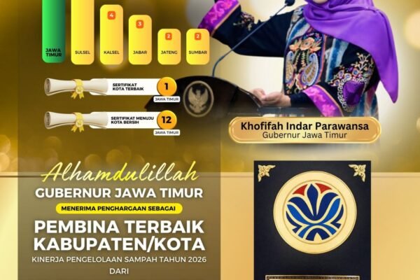 JAKARTA, 25 FEBRUARI 2026 – Provinsi Jawa Timur kembali menerima penghargaan bergengsi nasional dalam pengelolaan sampah yang digelar oleh Kemen