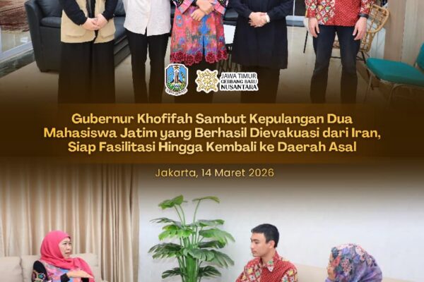 JAKARTA, 14 MARET 2026 – Gubernur Jawa Timur Khofifah Indar Parawansa bersyukur dua mahasiswa Indonesia asal Jawa Timur yang menempuh…
