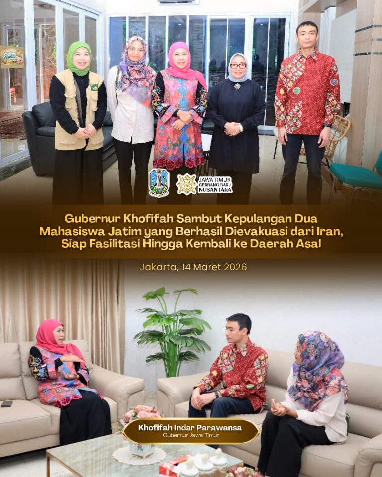 JAKARTA, 14 MARET 2026 – Gubernur Jawa Timur Khofifah Indar Parawansa bersyukur dua mahasiswa Indonesia…