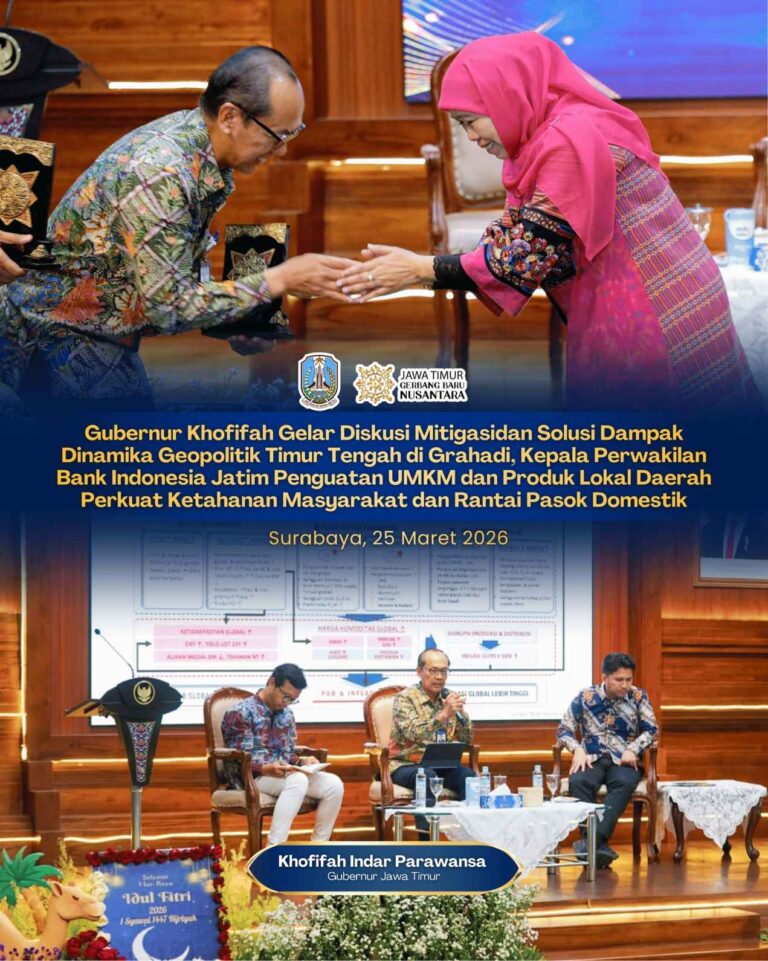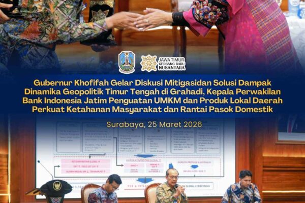 SURABAYA, 26 MARET 2026 – Gubernur Jawa Timur Khofifah Indar Parawansa menggelar diskusi publik bersama Bupati dan Wali Kota se-Jawa…