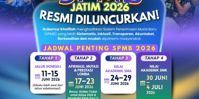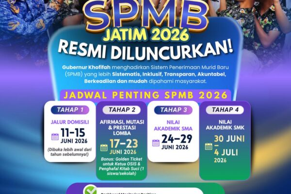 Jalur Domisili Dibuka Lebih Awal dan Perkuat Pengawasan Melalui Dashboard Pemantauan Realtime SURABAYA, 8 April 2026 – Gubernur Jawa Timur…