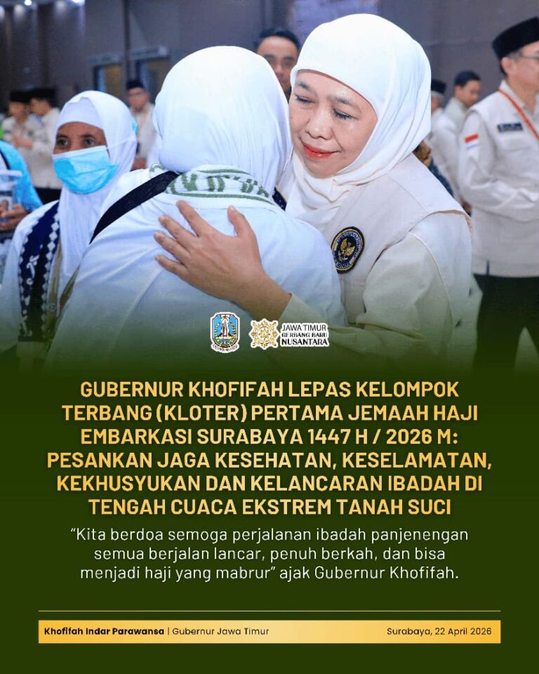 SURABAYA, 20 APRIL 2026 — Gubernur Jawa Timur, Khofifah Indar Parawansa mengajak seluruh elemen masyarakat memanfaatkan momentum strategis Peringatan Hari…