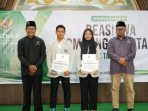 JOMBANG — Dua mahasiswa Universitas Pesantren Tinggi Darul Ulum (UNIPDU) Jombang berhasil meraih Beasiswa Jombang Prestasi Tahun 2025 yang diselenggarakan Badan Amil Zakat Nasional (Baznas) Kabupaten Jombang. Penyerahan beasiswa dilakukan pada Rabu (19/11/2025), bersamaan dengan agenda resmi Penyerahan Beasiswa Jombang Prestasi Strata 1 Perguruan Tinggi Swasta Tahun 2025.