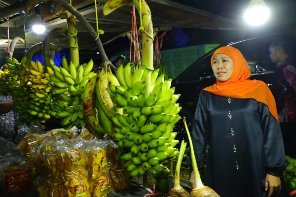 Ajak Peduli Pedagang Kecil, Bagikan Sembako dan Borong Pisang Agung dan Buah Khas LumajangKehadiran Gubernur Jawa Timur Khofifah Indar Parawansa di Pa