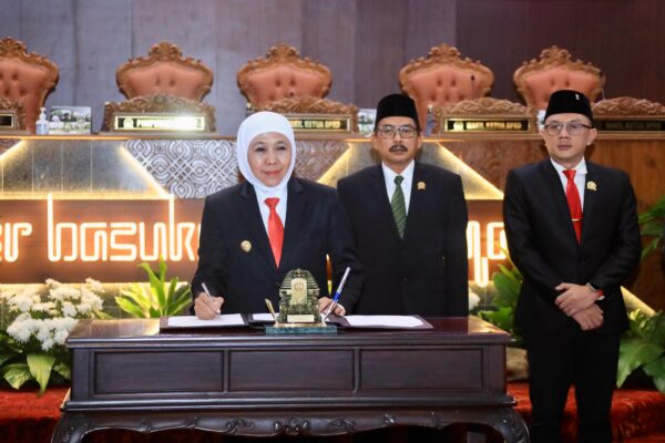 Gubernur Jawa Timur Khofifah Indar Parawansa bersama Pimpinan DPRD Jatim menyetujui Rancangan Peraturan Daerah (Raperda) tentang Perubahan Anggaran Pe
