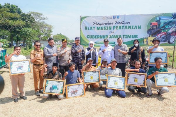 Gubernur Khofifah, Serahkan Bantuan Alsintan Kepada Gapoktan , Pastikan Jatim Siap Jadi Pilar Ketahanan Pangan Nasional