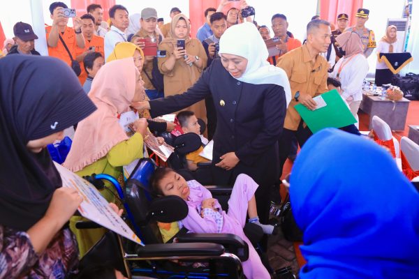Gubernur Jawa Timur Khofifah Indar Parawansa terus melakukan penyaluran bantuan sosial bagi warga masyarakat rentan melalui program Roadshow Sapa Bans