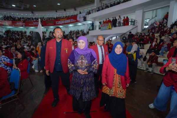 Gubernur Jawa Timur Khofifah Indar Parawansa menghadiri Sidang Terbuka Promosi Doktor Kapolda Jawa Barat Irjen Pol Rudi Setiawan, bertempat di Ruang A