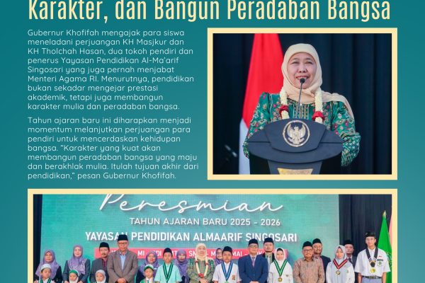 Gubernur Jawa Timur Khofifah Indar Parawansa mengajak para siswa untuk meneladani perjuangan pendiri Yayasan Pendidikan Al-Ma’arif Singosari, KH