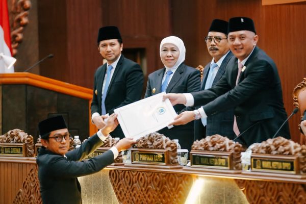 SURABAYA, 30 DESEMBER 2025 – Gubernur Jawa Timur Khofifah Indar Parawansa bersama Pimpinan Dewan Perwakilan Rakyat Daerah (DPRD) Provinsi Jawa T