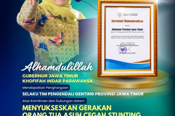 Keberhasilan Gubernur Jawa Timur Khofifah Indar Parawansa secara aktif bersinergi menurunkan stunting dan melaksanakan program 'Genting'