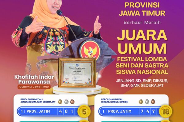 Semakin Optimis Jadi Barometer Pendidikan Nasional dengan Total Perolehan Medali TerbanyakProvinsi Jawa Timur kembali meraih gelar Juara Umum di ajang
