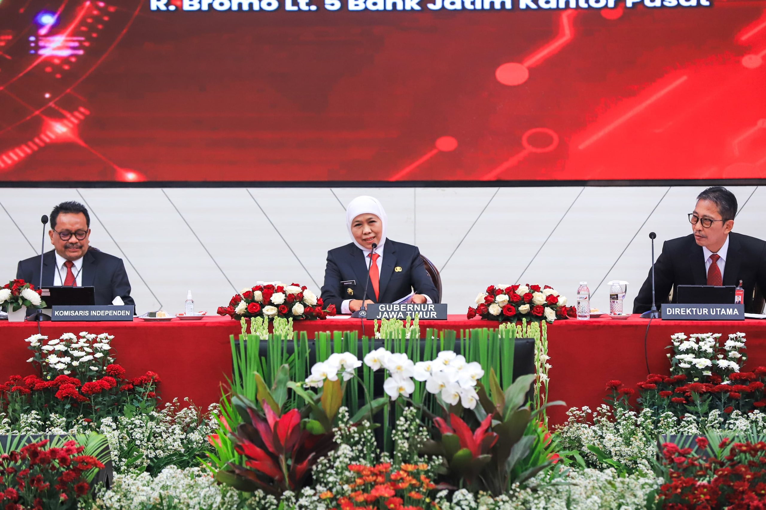 Jajaran pengurus baru PT Bank Pembangunan Daerah (BPD) Jatim Tbk resmi diumumkan dalam Rapat Umum Pemegang Saham (RUPS) yang digelar di Kantor Bank Jatim Pusat, Kamis (22/5).