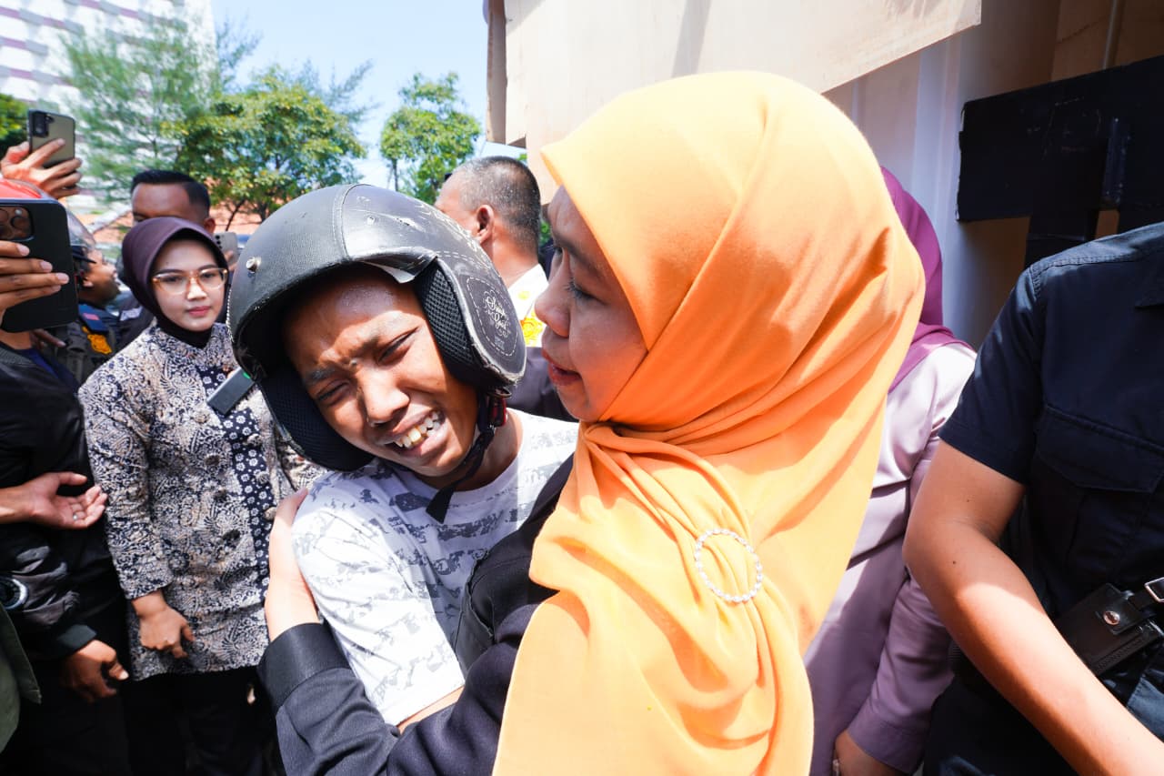 Orang nomor satu di Jatim ini pun sempat berbincang dengan sejumlah masyarakat yang berkerumun di depan Gedung Negara Grahadi. Gubernur Khofifah keluar dari Gedung Negara Grahadi dan menyalami sejumlah masyarakat yang ada di sana dan tidak ragu untuk memeluk mereka.