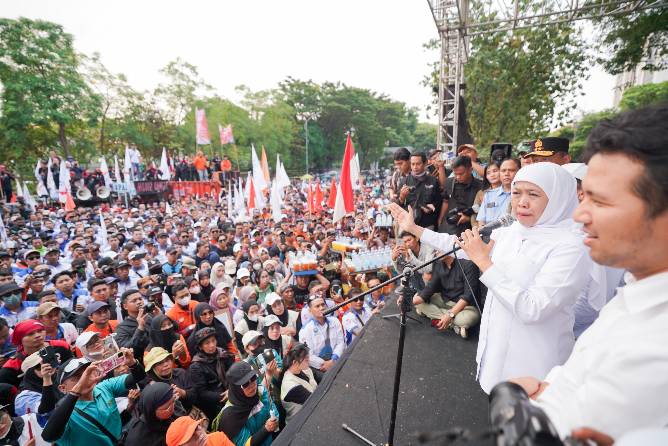 Gubernur Khofifah Bersama Ribuan Buruh se Jatim Sepakati 17 Tuntutan di Hari Buruh Internasional