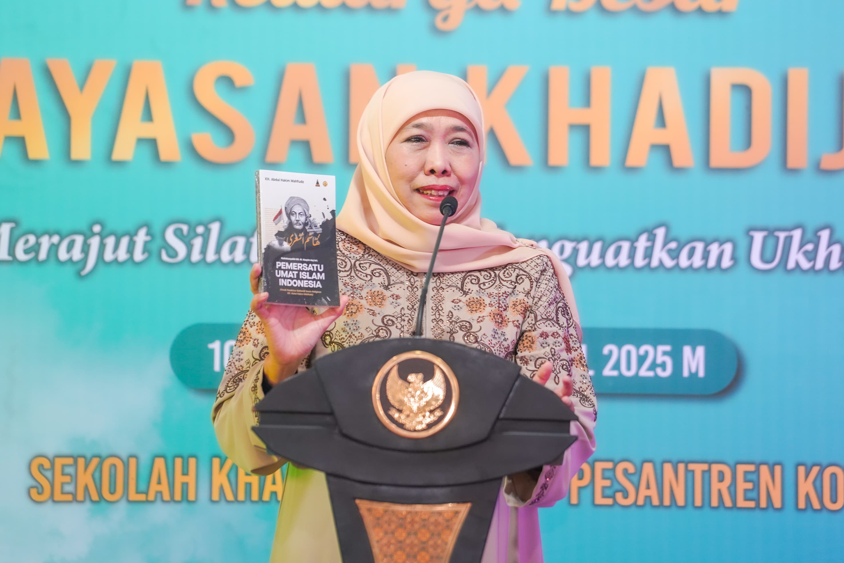 SURABAYA, 9 APRIL 2025 Gubernur Jawa Timur Khofifah Indar Parawansa menyatu dalam hangatnya Halal Bihalal Keluarga Besar Yayasan Taman Pendidikan Khadijah Tahun 1446 H di Aula Yayasan Khadijah, Jalan A. Yani Nomor 2-4 Surabaya pada Rabu (9/3) pagi.