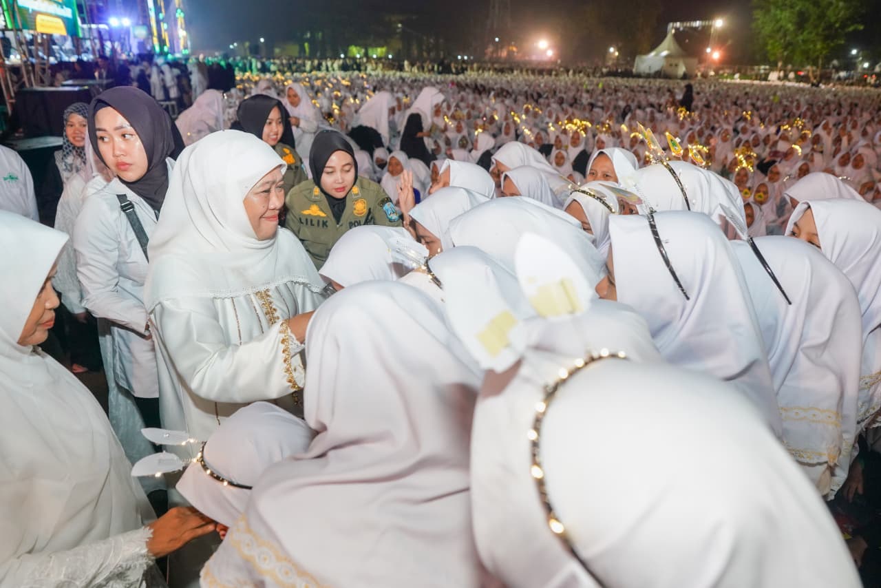 Gubernur Jawa Timur Khofifah Indar Parawansa menghadiri gelaran Lirboyo Bersholawat yang dipimpin oleh Habib Syech bin Abdul Qadir Assegaf dalam rangka Mensyukuri Hari Santri di Pondok Pesantren Lirboyo, Kota Kediri, Senin (20/10) malam.