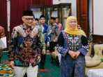 Gubernur Jawa Timur Khofifah Indar Parawansa menerima Kunjungan Kerja Menteri Haji dan Umroh RI KH. M. Irfan Yusuf di Gedung Negara Grahadi, Surabaya, Minggu (16/11) malam.