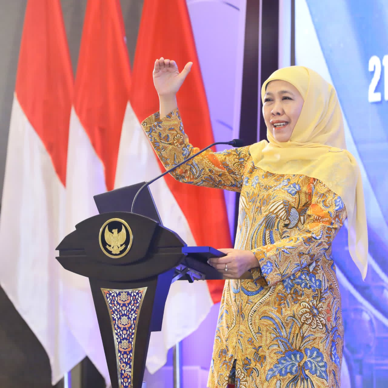 SURABAYA, 22 DESEMBER 2025 – Gubernur Jawa Timur Khofifah Indar Parawansa menghadiri Stadium General Penguatan Nilai Kepamongprajaan bertema “Mendukung Efektivitas Tata Kelola Penyelenggaraan Pemerintah Daerah” yang digelar di Dyandra Convention Center, Surabaya, Minggu (21/12).