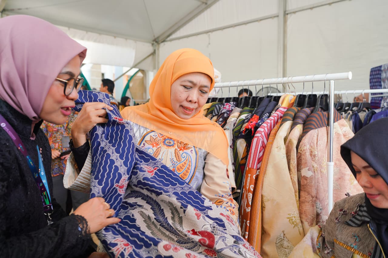 Setelah membuka FESyar 2025, Gubernur Khofifah bersama Kepala Perwakilan Bank Indonesia Provinsi Jatim Ibrahim, Kepala Departemen Ekonomi Syariah BI Pusat Imam Hartono, dan Sekretaris Daerah Adhy Karyono meninjau beberapa stand produk kerajinan tangan, makanan dan minuman.
