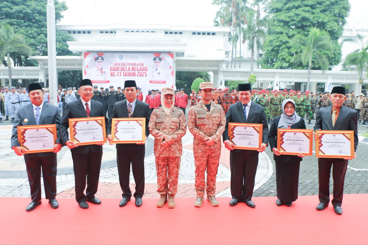 SURABAYA, 19 DESEMBER 2025 — Gubernur Jawa Timur Khofifah Indar Parawansa mengajak seluruh elemen masyarakat untuk meneguhkan kembali semangat bela negara sebagai fondasi utama dalam mewujudkan Indonesia yang maju, tangguh, dan berdaulat.