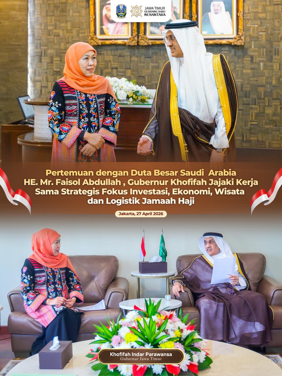 membahas berbagai peluang kerja sama strategis antara Provinsi Jawa Timur dengan Pemerintah Kerajaan Saudi Arabia di berbagai sektor.