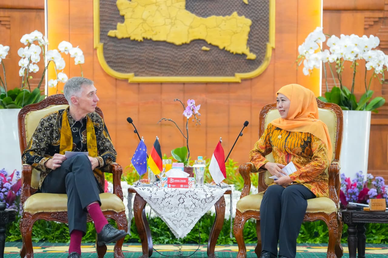 SURABAYA, 9 JANUARI 2025 – Gubernur Jawa Timur Khofifah Indar Parawansa menerima kunjungan Duta Besar Jerman untuk Indonesia H.E. Mr. Ralf Beste di Gedung Negara Grahadi Surabaya, Jumat (9/1).