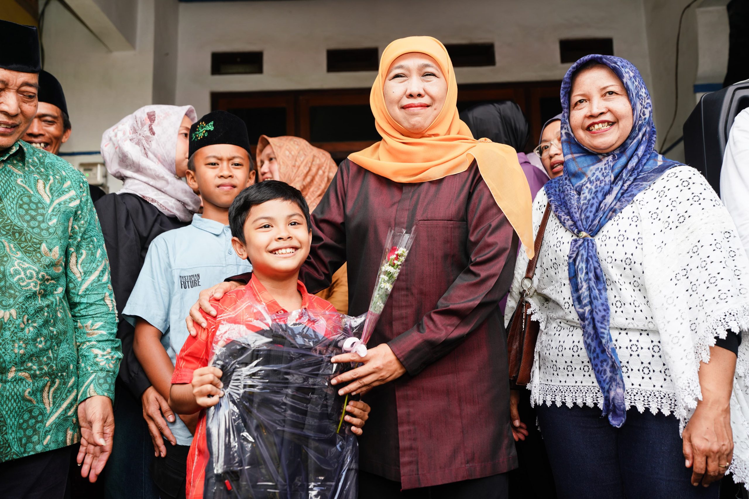 Turut mendampingi Gubernur Khofifah, Kepala Dinas Pendidikan Prov. Jatim Aries Agung Paewai, Kepala Dinas Sosial Prov. Jatim Restu Novi Widiani dan jajaran Perangkat Dusun Sumbul, Desa Klampok, Kec. Singosari, Kab. Malang.