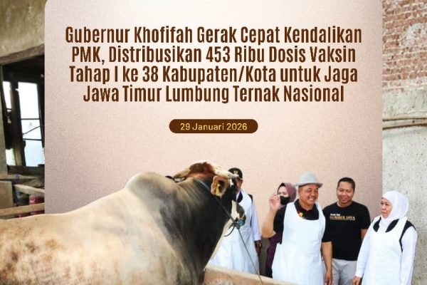 SURABAYA, 29 JANUARI 2026 – Gubernur Jawa Timur Khofifah Indar Parawansa memastikan Pemerintah Provinsi Jawa Timur bergerak cepat merespons peni