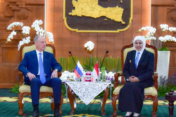 Gubernur Jawa Timur Khofifah Indar Parawansa menerima kunjungan kehormatan Penasihat Presiden Federasi Rusia, H.E. Nikolai Patrushev, bersama delegasi